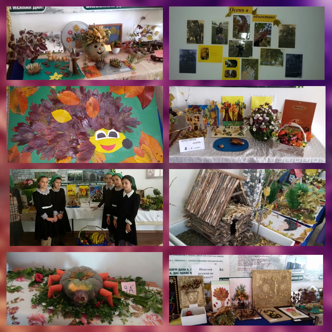 У нас в школе является традицией - проведение совместных выставок. Организуя такие выставки мы преследуем цель-вовлечение родителей в жизнь школы.Также была организована фотовыставка "Осень в объективе",где ребята могли проявить себя в роли фотографа.Также состоялся показ мод " У природы нет плохой погоды". Были показаны модели одежды из подручных материалов,которые ребята изготовили своими руками.Очень красивым конкурсом стал конкурс фруктовых корзин. Ребята приняли активное участие в конкурсе стихов "Унылая пора".Прекрасные работы выставили на конкурс рисунков "Осенние краски" наши молодые художники.